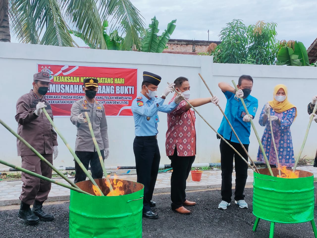 Gerak12.com – Kejaksaan Negeri Kabupaten Batanghari, memusnahkan barang bukti hasil sitaan dari