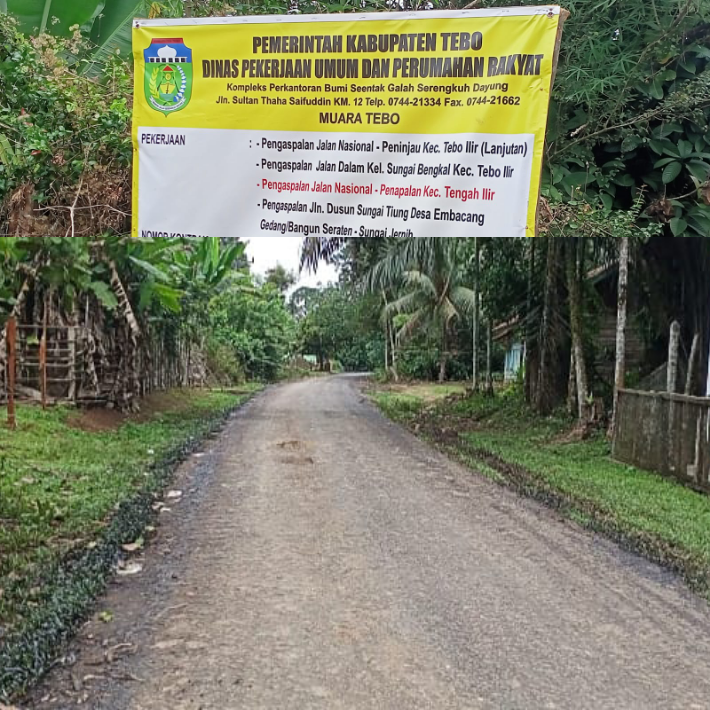 Gerak12.com, Tebo – Masyarakat Desa Penapalan Kecamatan Tengah Ilir Kabupaten Tebo,Provinsi Jambi kecewa dengan hasil pekerjaan jalan yang dikerjakan oleh CV Mulia Ardhana yang terkesan asal jadi.