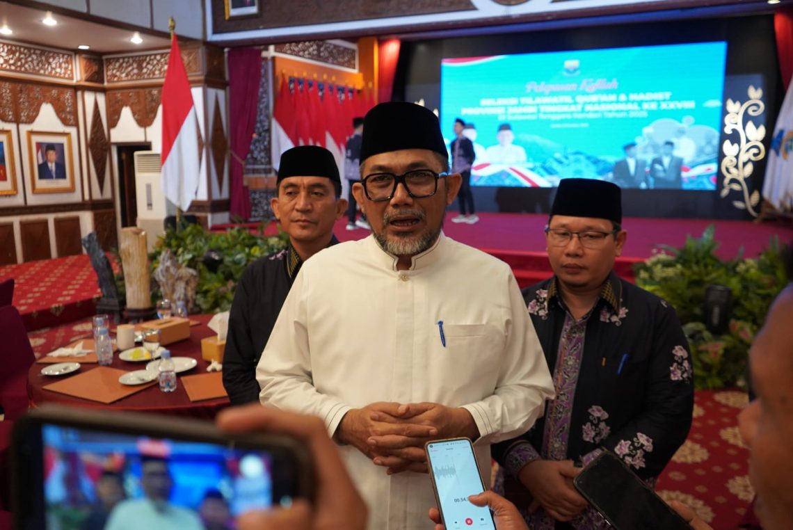“Saya sangat mengapresiasi dan ucapkan terima kasih yang setinggi-tingginya kepada saudara-saudari yang terpilih sebagai kafilah yang mewakili Provinsi Jambi pada ajang Seleksi Tilawatil Qur’an dan Hadits (STQH) Tingkat Nasional Tahun 2025,” ucap Sekda Sudirman.